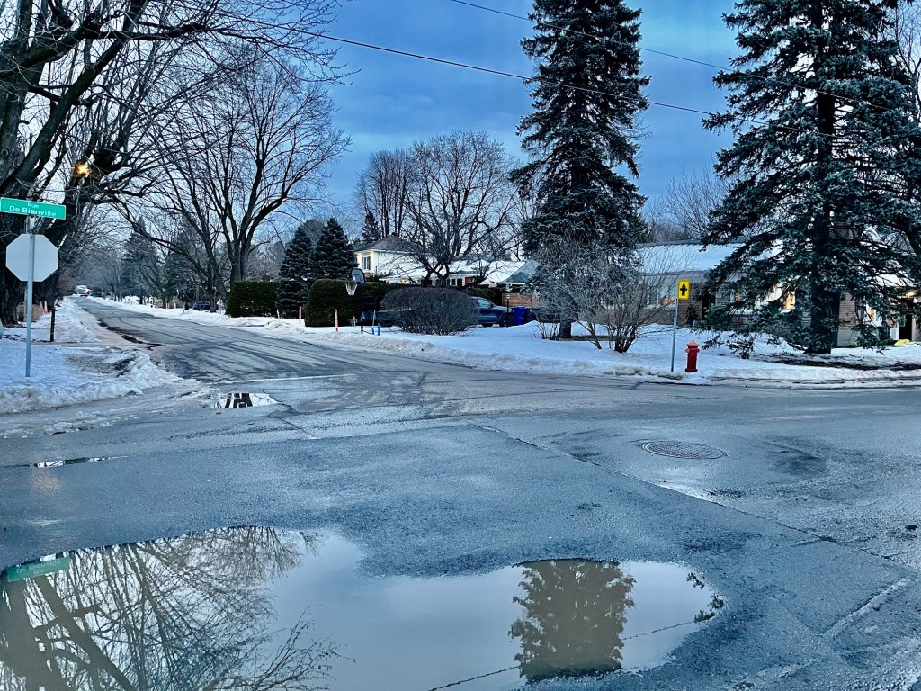 It was +8 today. As we were driving to emergency clinic, we saw almost no snow on the side of the road, just dirty April-looking grass. And it felt like early April too – humid and windy with not a hint of winter in the air. I decided to walk my daughter home after school – we were walking through the mud and flakes and dirty melting snow so uncharacteristic for February. I am really scared to think about what this early spring signifies for this summer and on a longer scale for our future.