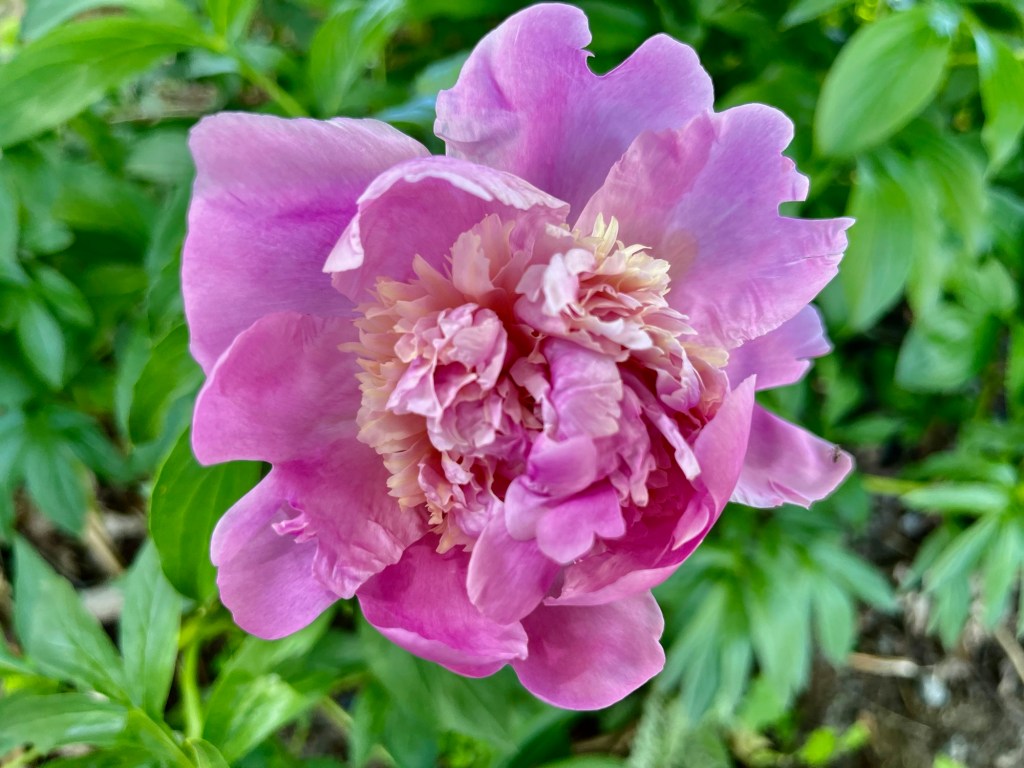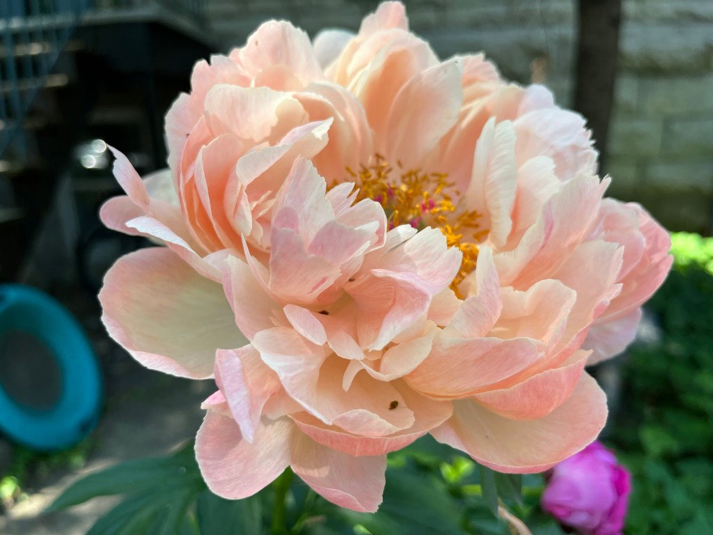 I took a day off, a very hot day, and went for lunch with Griffin. Griffin gave me a piece of glass from a hundred-year old glass factory explosion as a birthday gift and promised to help me to look for a therapist without me asking. Because with Griffin I never have to ask. They told me about queer talent shows they are working on and we spoke about my religious trauma and their time in Paris. As we were walking back through little Burgundy, we saw this tea-rose coloured peony – the colour I never saw before on this flower. I do not interpret everything as a sign, but I am deeply grateful for the ability to see the connections and patterns.