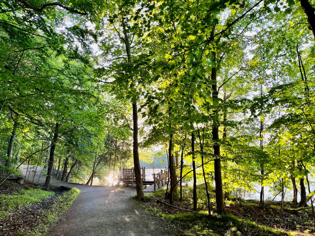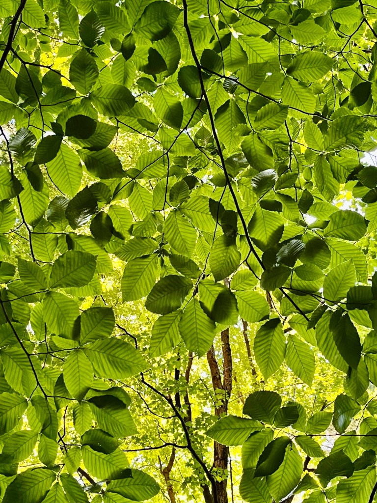 Today was another spacious day, a succession of summery, light, unproductive activities that one could do only on a summer weekend. Walking through buzzing Chinatown, thick with the smells of frying fish and sounds of a very good street violin performance. Sipping iced matcha smoothie with sweet tapioca bubbles. Visiting my backyard wild strawberry patch – astonished and grateful for its abundance. While my garden strawberry varieties are struggling with lack of sun and too much attention from our wild neighbours, their wild sisters are slowly conquering the garden. Their only competition are goldenrods that now grow tall and in dense. Most of the season they look like weeds and my garden, quite honestly, looks half-abandoned, but I can’t bring myself to “weeding out” the goldenrods, nor the chamomiles, nor the wild roses. Then, after everyone has settled for an evening, a walk in the forest. I went to the Lac du Moulin today – something I haven’t done in a long time. As I was circling the lake, I stopped to listen to an unfamiliar bord song, took out my phone with the Merlin app – and then, right there a miracle happened – a chorus of sounds and calls I have not heard before, coming from the birds I never saw before and didn’t see then. They were all around me, hidden in the foliage: black-throated green warbler, scarlet tanager, eastern wood pewee, american redstart, brown creeper, blackburbian warbler and my old acquaintances, red-eyed vireos and black-capped chikadees. Ever since I started listening to the birds, sounds excite me. I hear now the calls of the tree frogs, the buzz of insects, the angry cries of two rambuctious baby-racoons chasing each other up the tree, while their mother is surveying something in the direction of the lake. I am hearing the whisper of the leaves. I have just learned that there is a word in Anishinabeemowin (a verb, to be sure) that means “the leaves make a pleasant sound in the wind” – minwewebagaasin. I also say a chipmunk, two juvenile deer and a giant millipede.