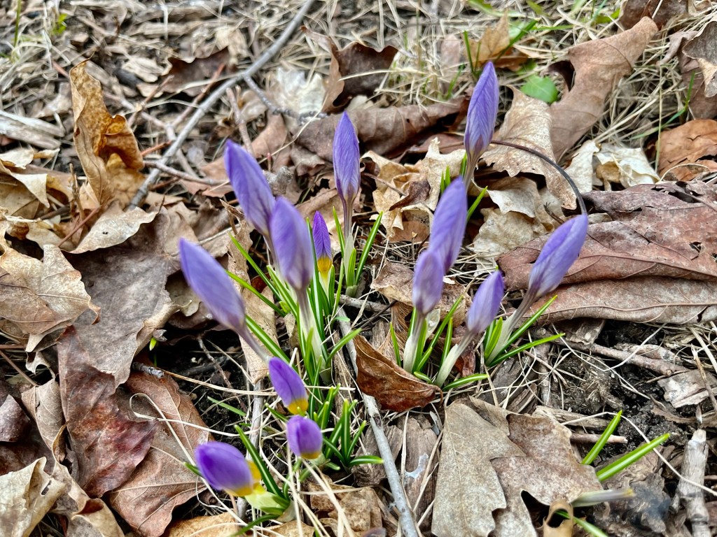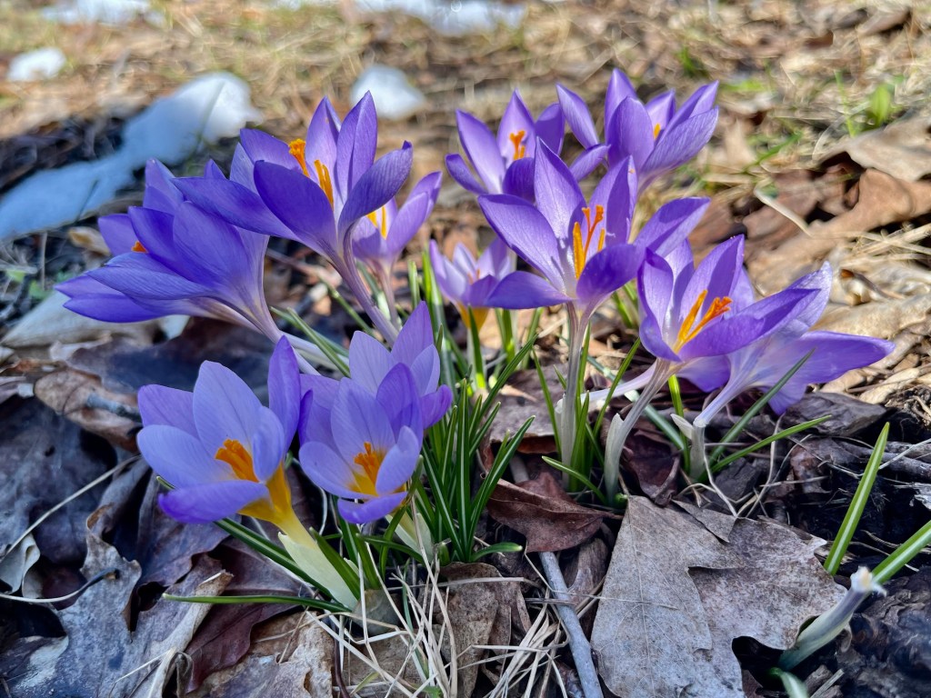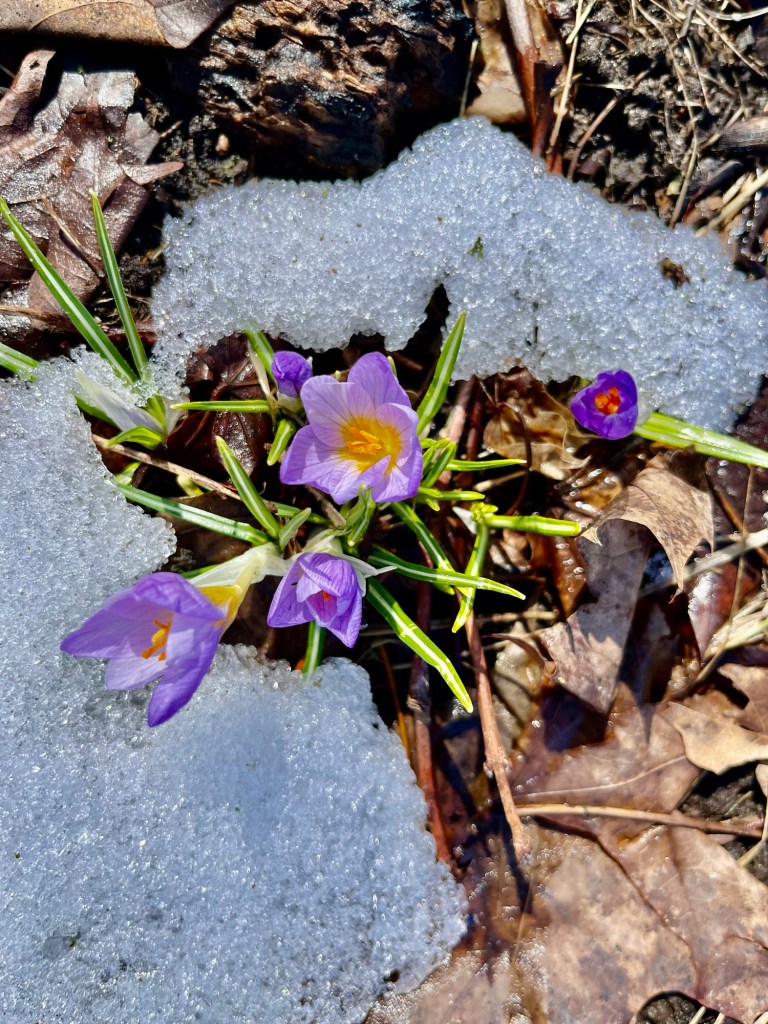 I have expected to see my crocuses squashed and broken under the weight of the recent snowfall. Instead, they emerged victorious and wasted no time to greet the spring snow sun.
