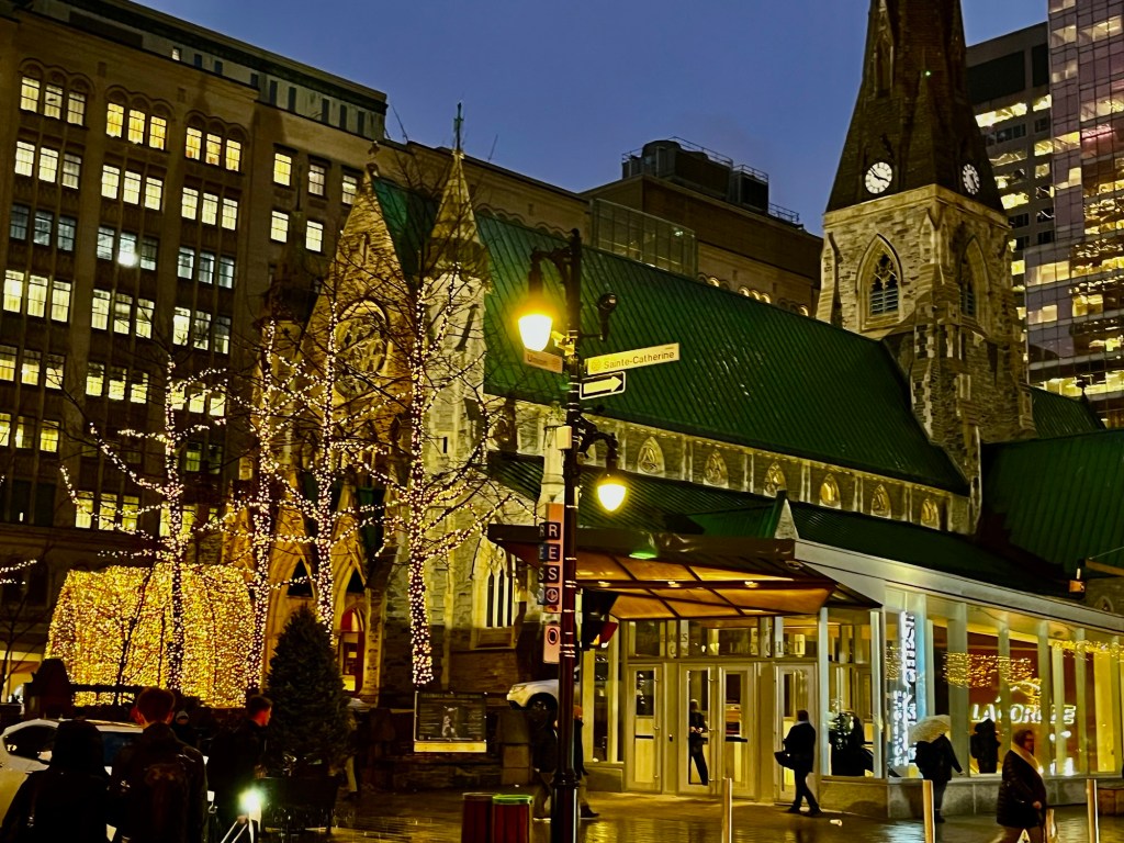 I resent the idea of winter and winter commutes, of the long meandering days that start and end in darkness. But tonight, stepping into the cold rain and being greeted by the warm yellow ocean of Christmas lights and by female voice singing Wicked Games somewhere on the corner near the Hudson Bay Company flagship store, the tired and light-dependent creature that I am, I felt touched by grace.