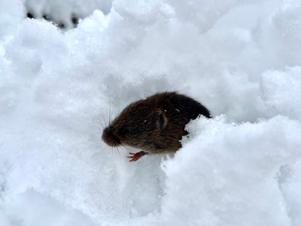 And the meadow vole who has joined me on the walk