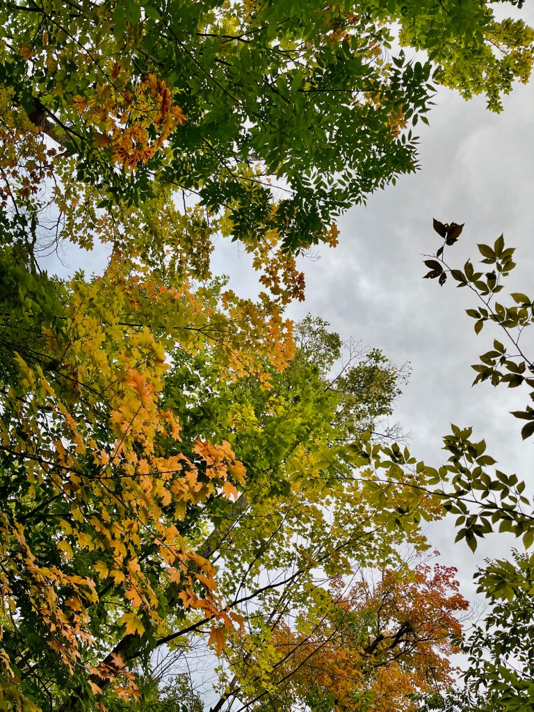 Trees are getting visibly yellower, oranger, redder. Night is encroaching upon the day. I do my evening walks in the twilight. Tonight, I was doing it in a company of a handsome silvery moon. A waning or a waxing crescent – I can’t tell. I am now thinking of the moon as the grandmother, no doubt under the influence of Haudenosaunnee stories. grandmother accompanied me on my walk tonight, I loved catching glimpses of her over the roofs and in the bald patches between the trees.