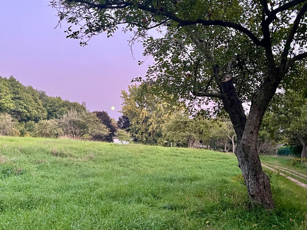 I am having a hard time adjusting to the shortening day, so when I set out for my Sunday evening walk to the forest, just as my kids settled to watch Pirates of the Caribbean for the first time, it was to let to get to the lake before dark. I realised it halfway and reluctantly turned back. It did feel easier this time. I smiled getting better of letting go. I walked back to the Clearview entrance, a little disappointed, but feeling light about making the right decision, and as I emerged from the forest onto the field I saw her looking at me. Big, almost full, pale yellow, low on the purple evening sky, framed by the old apple trees, like eyelashes, it looked as if she’d been waiting to reveal herself to me. If you asked me, I wouldn’t want to be anyone else or in any other place, than I am.